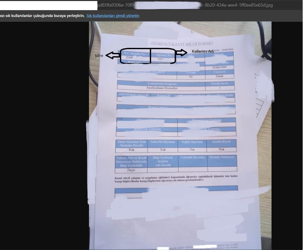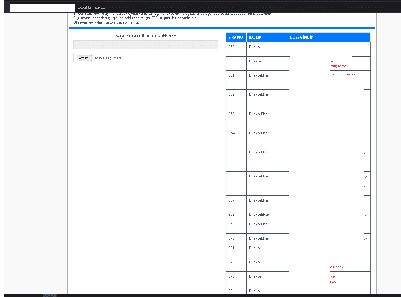 Bulduğumuz bu belge sayesinde, elimizde bir Öğrenci No ve TC Kimlik Numara bilgimiz bulunduğundan sisteme giriş sağlayabiliyorduk. Sisteme giriş sağladıktan sonra, öğrencilerin dilekçe gibi bazı belgeleri yükleyebildikleri bir upload form ile karşılaştık.